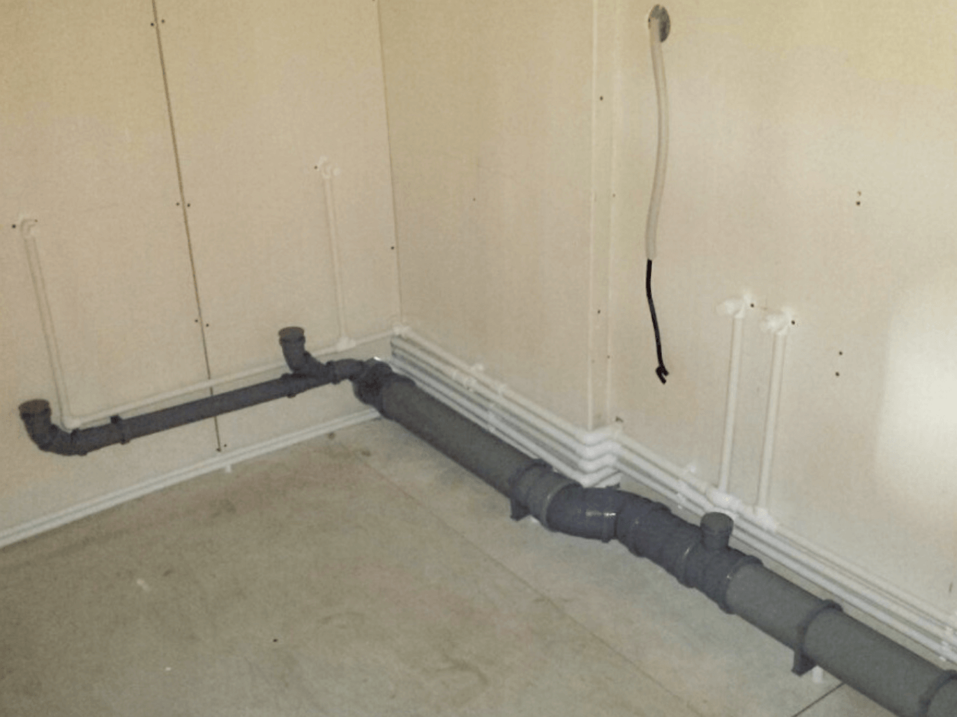 Еще одна обязательная система, прокладка которой внутри дома мало зависит от выбранной системы утилизации сточных вод. Как правило, предусматривается установка центрального стояка с минимизацией длины сточных труб от всех источников.